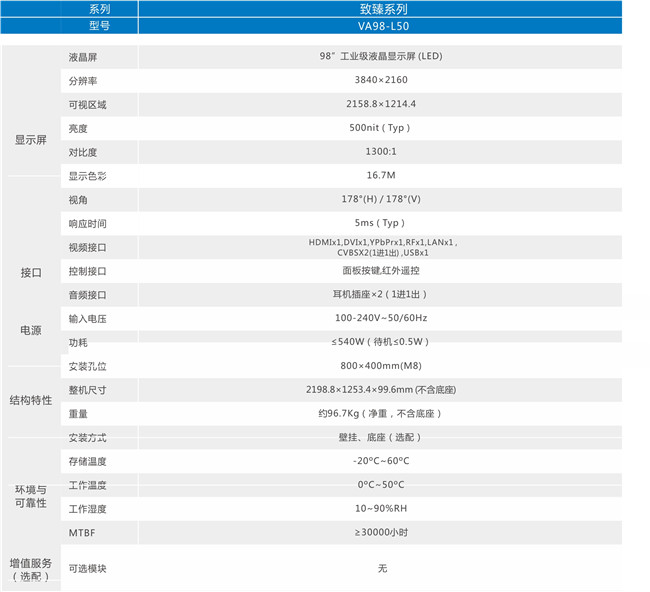 1. 窄边框设计,钣金工业外观,更适合各种公共场合需求2. 采用工业级元件和高防火材料,大幅提升整机可靠性3. 支持10bit 双路LVDS(3840*2160)高清显示,真彩色4. OSD 人性化操作菜单,具有完善的工厂设置模式5. 安卓系统4.2.2